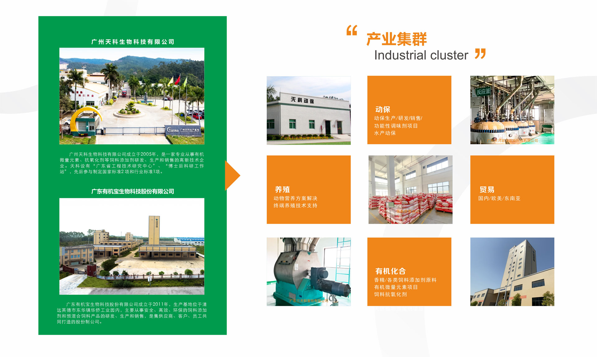 天科公司始創(chuàng)于1997年,是一家集研發(fā)、生產(chǎn)和銷售于一體的、處于行業(yè)領(lǐng)先地位的高新技術(shù)企業(yè),主要從事無公害、綠色環(huán)保型飼料添加劑、添加劑預(yù)混合飼料等的研發(fā)與生產(chǎn)。公司總部設(shè)在廣州市天河區(qū),生產(chǎn)基地位于廣州市花都區(qū)和英德市清遠華僑工業(yè)園內(nèi),總占地面積逾80000平方米。集團下屬廣州天科生物科技有限公司順利通過ISO9001質(zhì)量管理體系、ISO22000食品安全管理體系和FAMI-QS歐洲飼料添加劑和預(yù)混合飼料質(zhì)量體系認(rèn)證,廣州天科生物科技有限公司產(chǎn)品質(zhì)量檢測中心通過中國合格評定認(rèn)可委員會(CNAS)認(rèn)證。